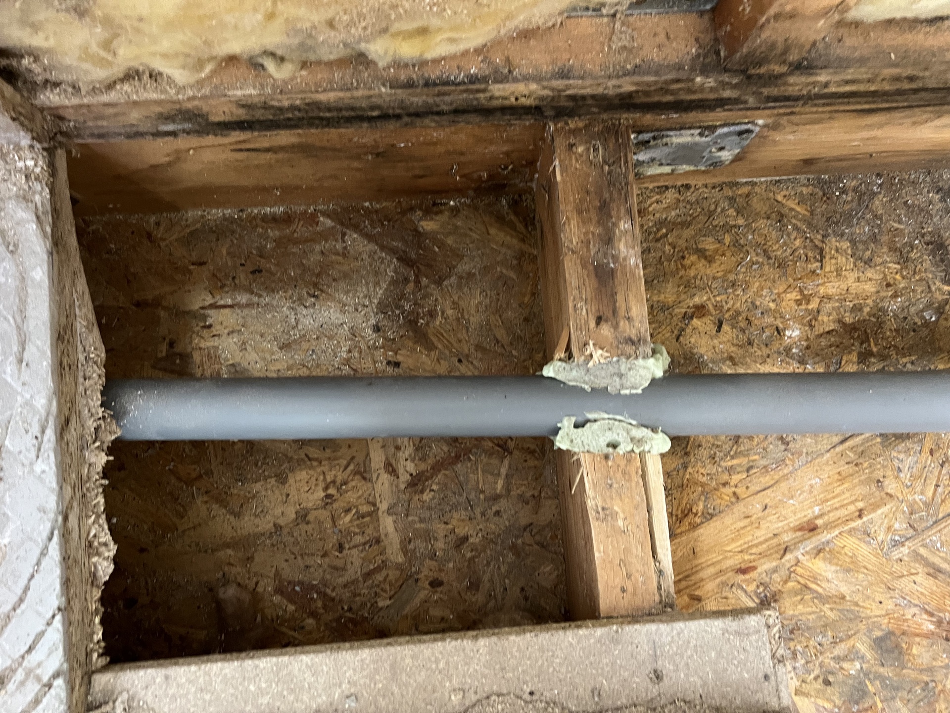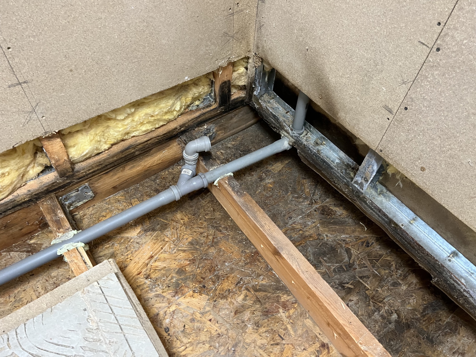 Po příjezdu na místo byla již podlaha zakryta. Bylo proto nařízeno její opětovné otevření. Již při prvotní vizuální kontrole bylo patrné rozsáhlé napadení konstrukce plísní – a to jak v prostoru podlahy, tak ve stěnách.
